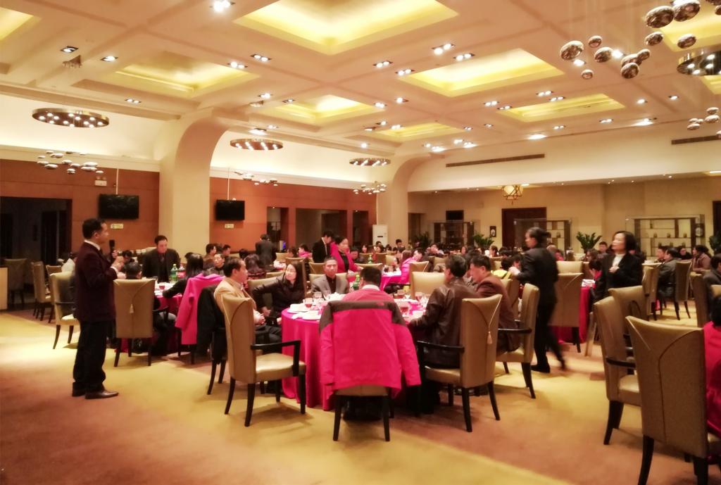 当天晚上,学院2018贺年聚会在喜来登大酒店举行。在欢乐祥和的气氛中,范秀仁院长发表热情洋溢的祝酒词,学院领导集体祝酒,全体教职工共同举杯,互相表达了新春祝福。