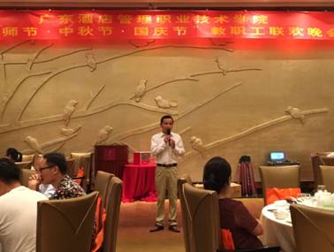 优秀教工代表——酒店工程系副主任何银川发言。作为一名专任老师,何老师在他10年教学工作中,始终以“教好每一节课、教好每一个学生”作为自己的奋斗目标,把好教学环节中的每一关;作为工程系教学管理者,他对系日常的教学管理工作任劳任怨、勤恳工作,24小时不关机,哪里需要哪里顶上,顺利完成了学院交给的各项任务,得到了学院领导和同事们充分的肯定。