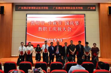 接下来,校董会领导为服务广酒满两周年20位教工和2017-2018年优秀教职工颁奖及合影留念。