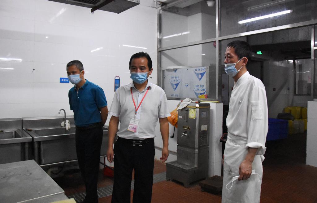 【本校消息】6月2日下午,广东酒店管理职业技术学院组织开展学生返校疫情防控验收工作自查。校长范秀仁、党委书记戴炳源、副校长卢东亮、孙令武、校长助理江伟及相关部门工作人员,对校内各项疫情防控工作进行自查自检。