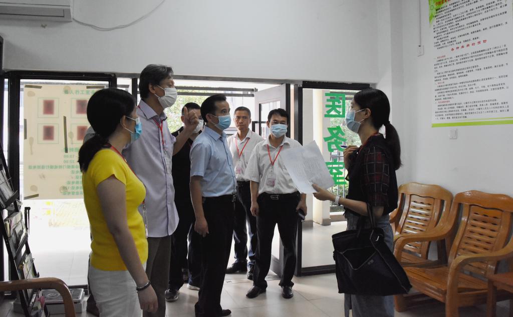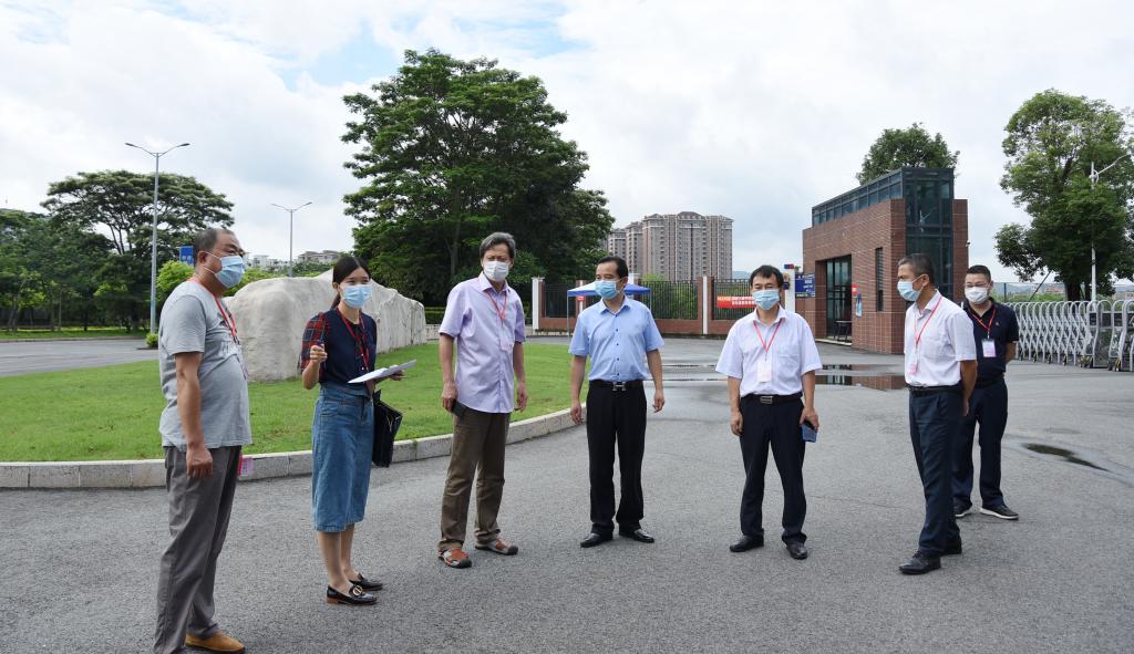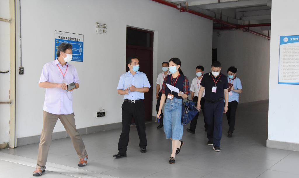 校长范秀仁、党委书记戴炳源、副校长覃家君、卢东亮、孙令武、校长助理江伟及相关部门工作人员陪同验收组,实地检查返校准备工作情况。