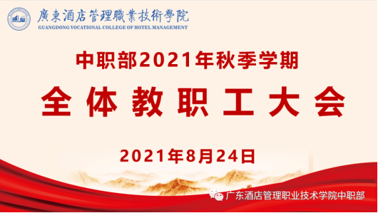 新学期即将到来,我们将迎来一批新同学,并开始新一学期的征途。为做好新学期学生日常行为规范、教育教学等工作,广东酒店管理职业技术学院中职部于8月24日早上8:30,在综合楼101阶梯课室召开全体教职工大会。