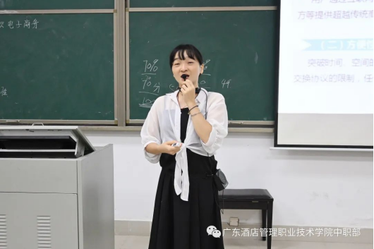 陈乃云老师以“开学第一课”的形式,为大家展示电子商务公开课。陈老师为大家示范开学第一课如何和学生交流,她用风趣幽默的语言和丰富的肢体语言和老师们拉近距离,但同时也确立了课堂上必须要遵守的要求。