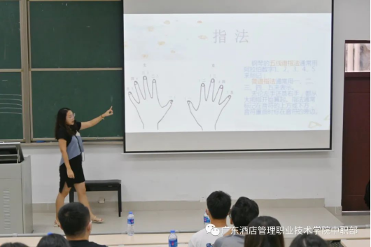 张婷婷老师为大家带来钢琴基础知识公开课。在课堂中,张老师充分发挥利用教学内容的特性,和老师们进行“手指小游戏、五线谱手操口诀”等有趣的互动,使课程氛围活跃。