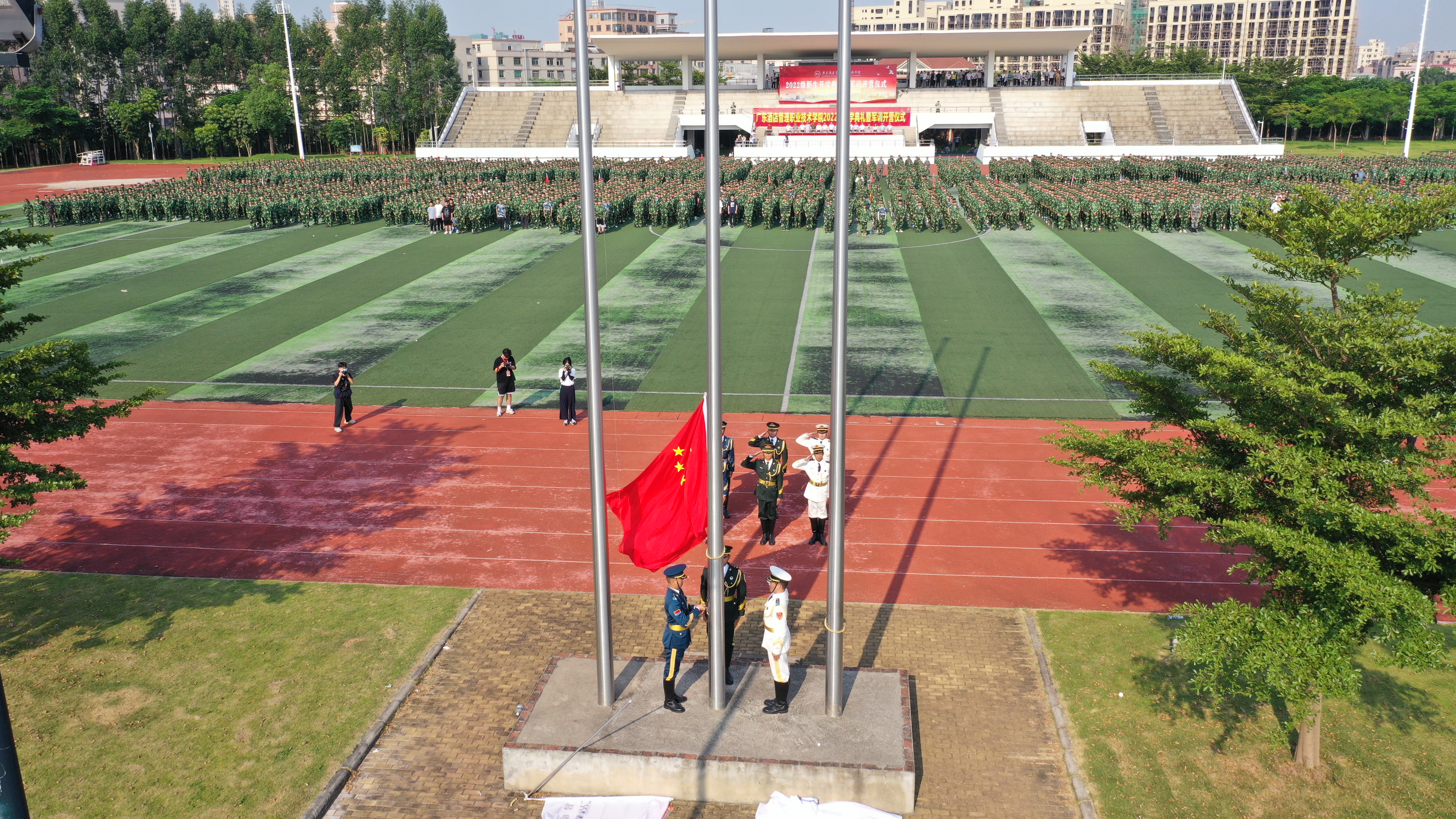 全体师生昂首肃立,庄严挺拔、英姿飒爽的护旗队踏进运动场。在师生的注目下,五星红旗缓缓升起。大家齐唱国歌,唱出对祖国的无限热爱与报效祖国的坚定信仰。