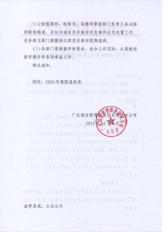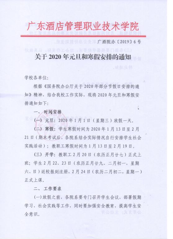 关于2020年元旦和寒假安排的通知