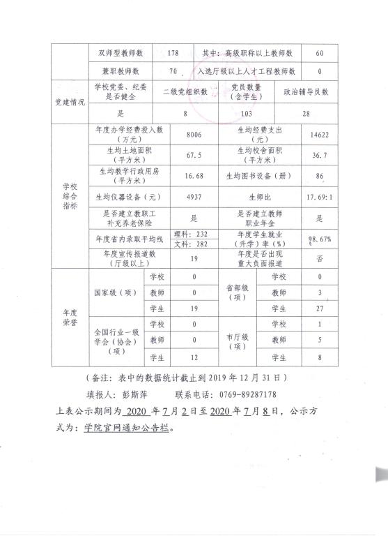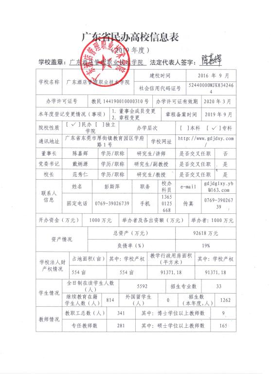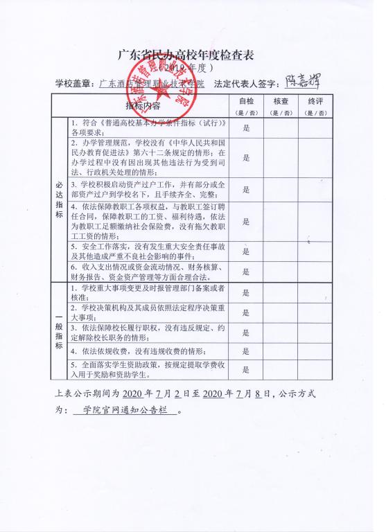 广东酒店管理职业技术学院2019年度检查表、信息表公示
