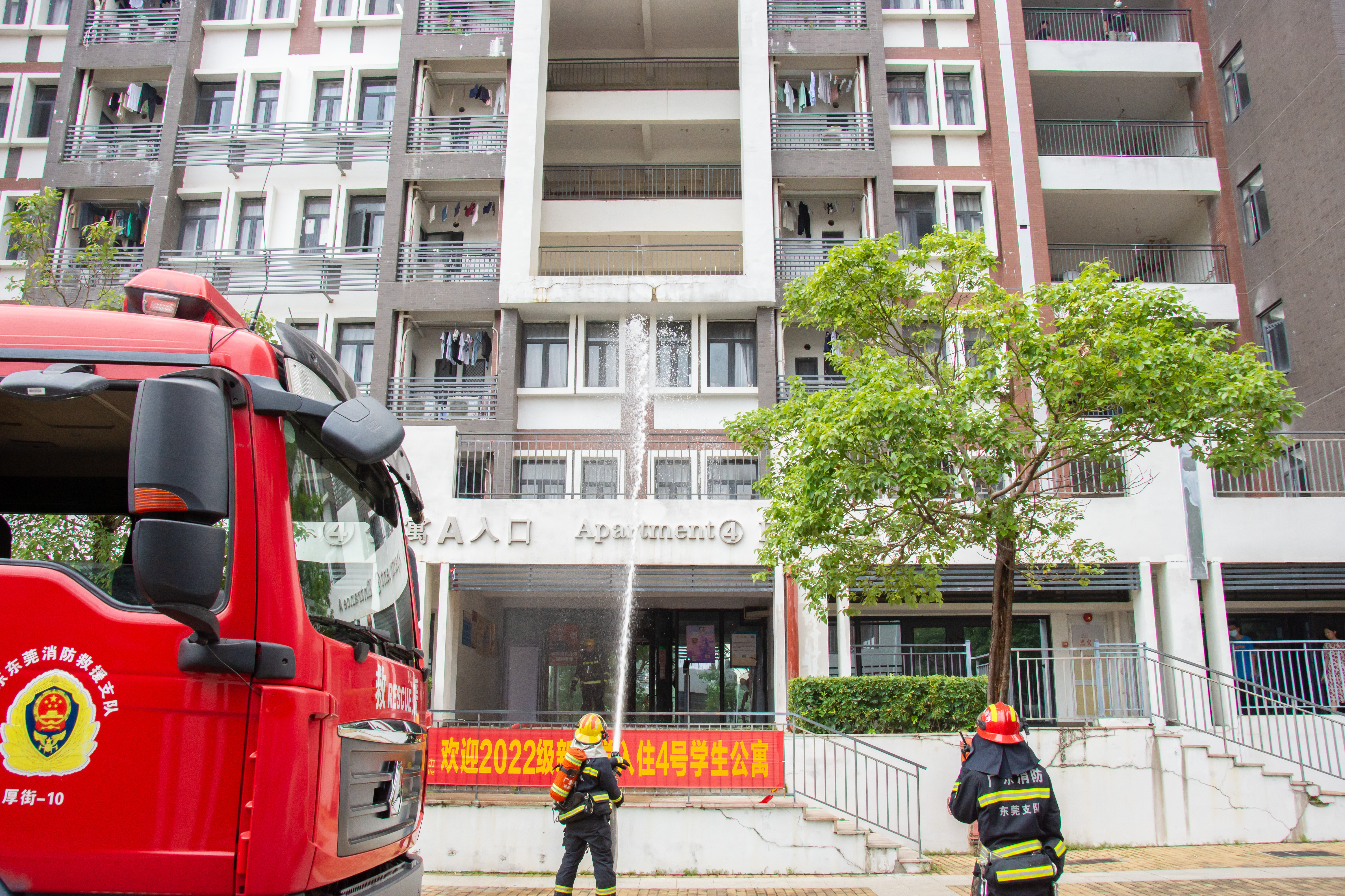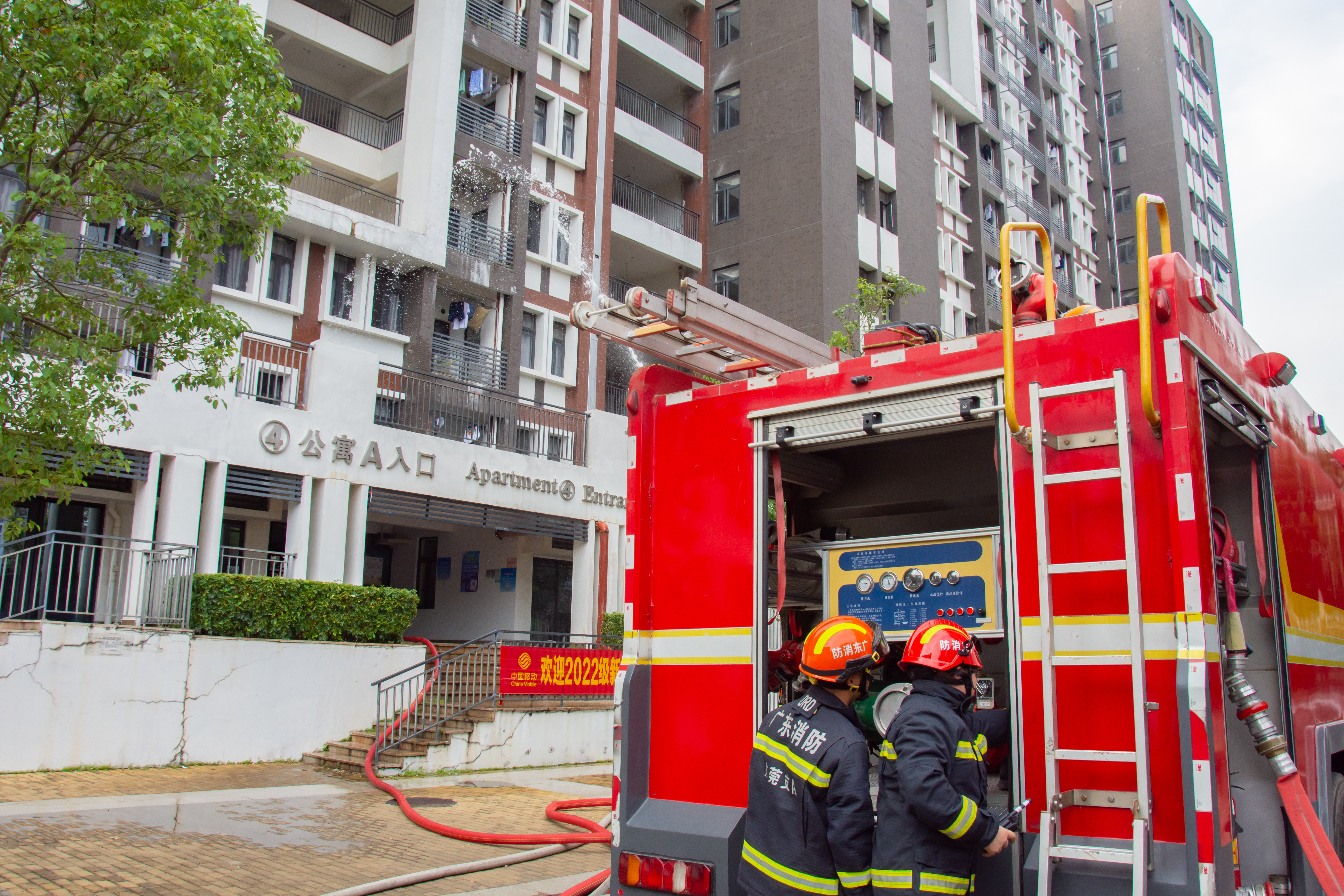 伴随着消防警铃声