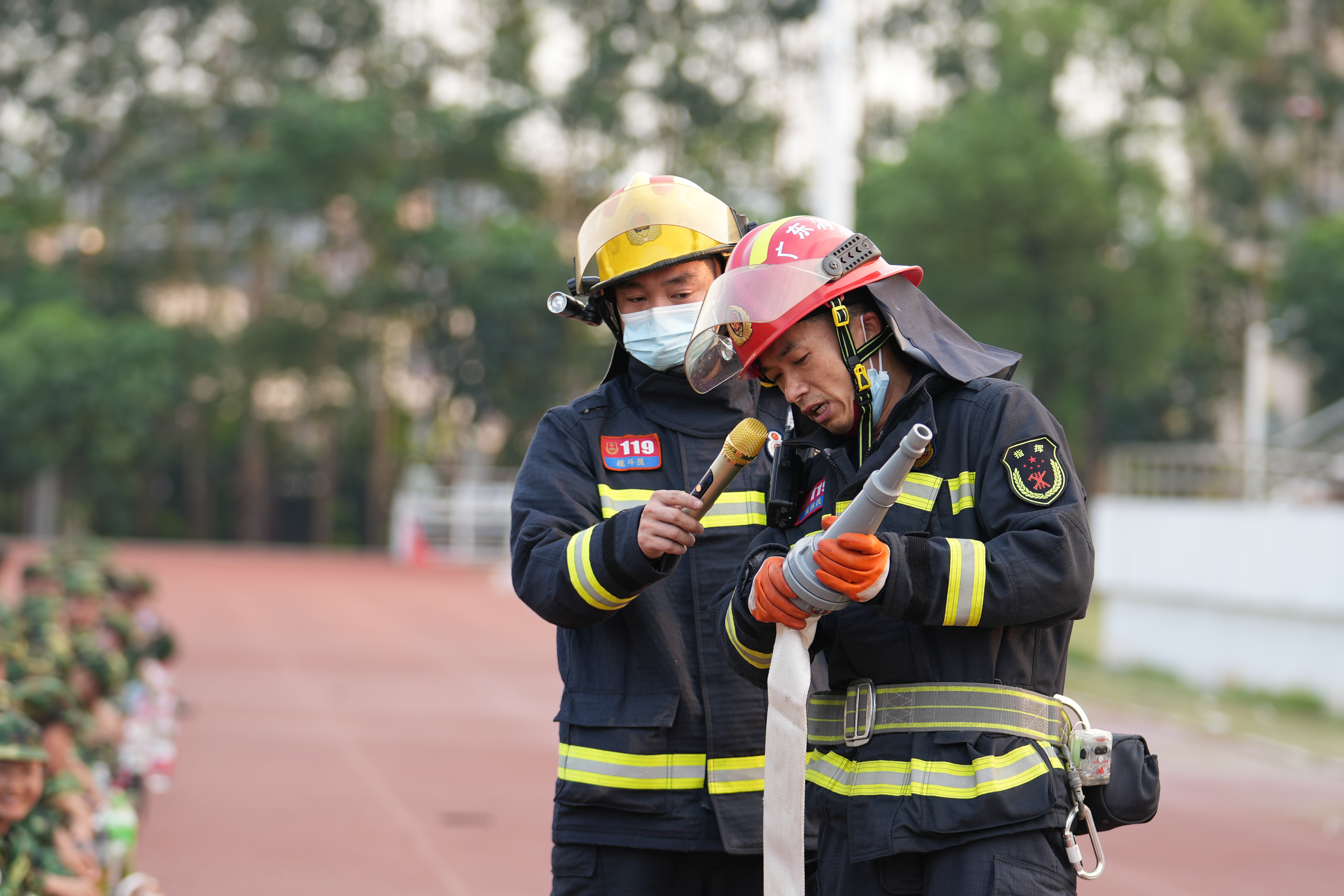 消防员宣讲消防知识
