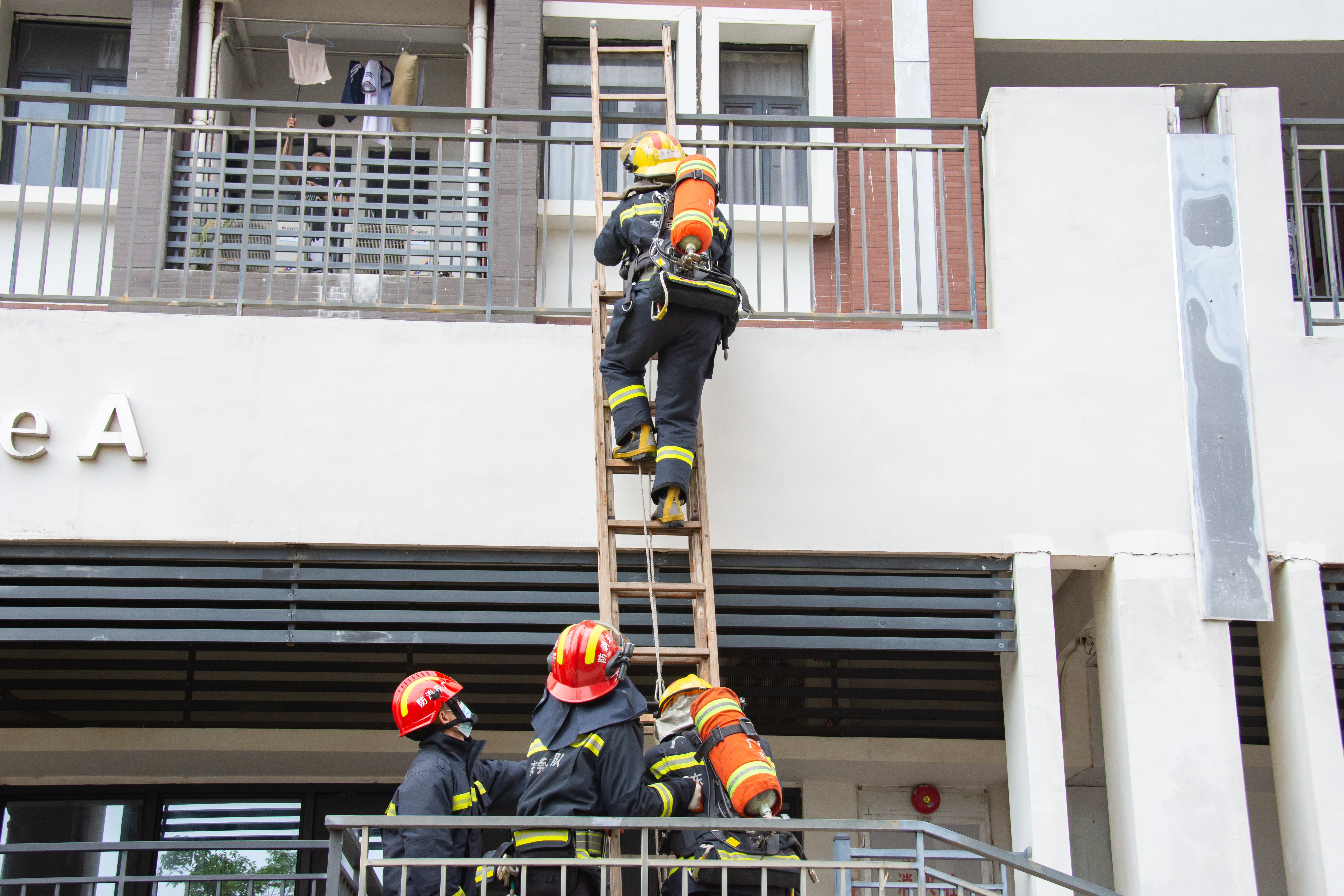 搭建二节拉梯进入火场实施救援