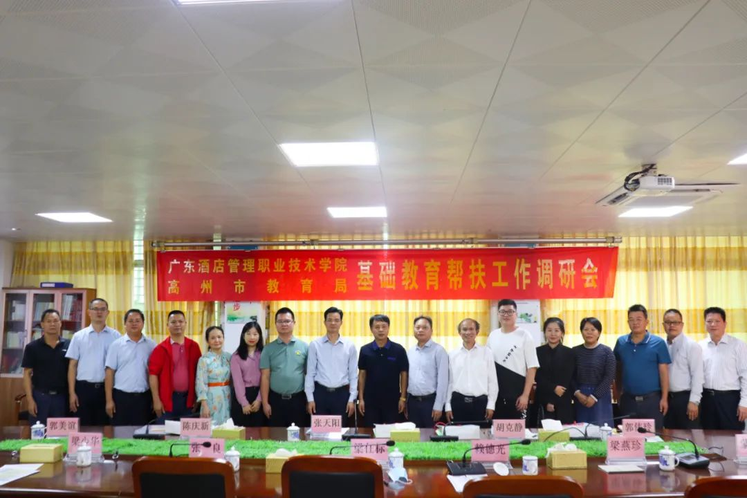 为深入贯彻省委、省政府关于推动基础教育深化改革高质量发展的意见,推进实施全口径全方位融入式结对支持粤西地区基础教育工作,推动高州市基础教育高质量发展,近日,我校副校长张天阳、教务处处长胡克静、继续教育学院院长陈庆新、人事处郭伟玲、党政办郭美谊一行5人赴高州市教育局开展调研,深入了解帮扶需求,推动帮扶工作实施。 10月17日下午15点30分,帮扶工作调研座谈会于高州市教育局5楼会议室举行,我校调研小组及高州...