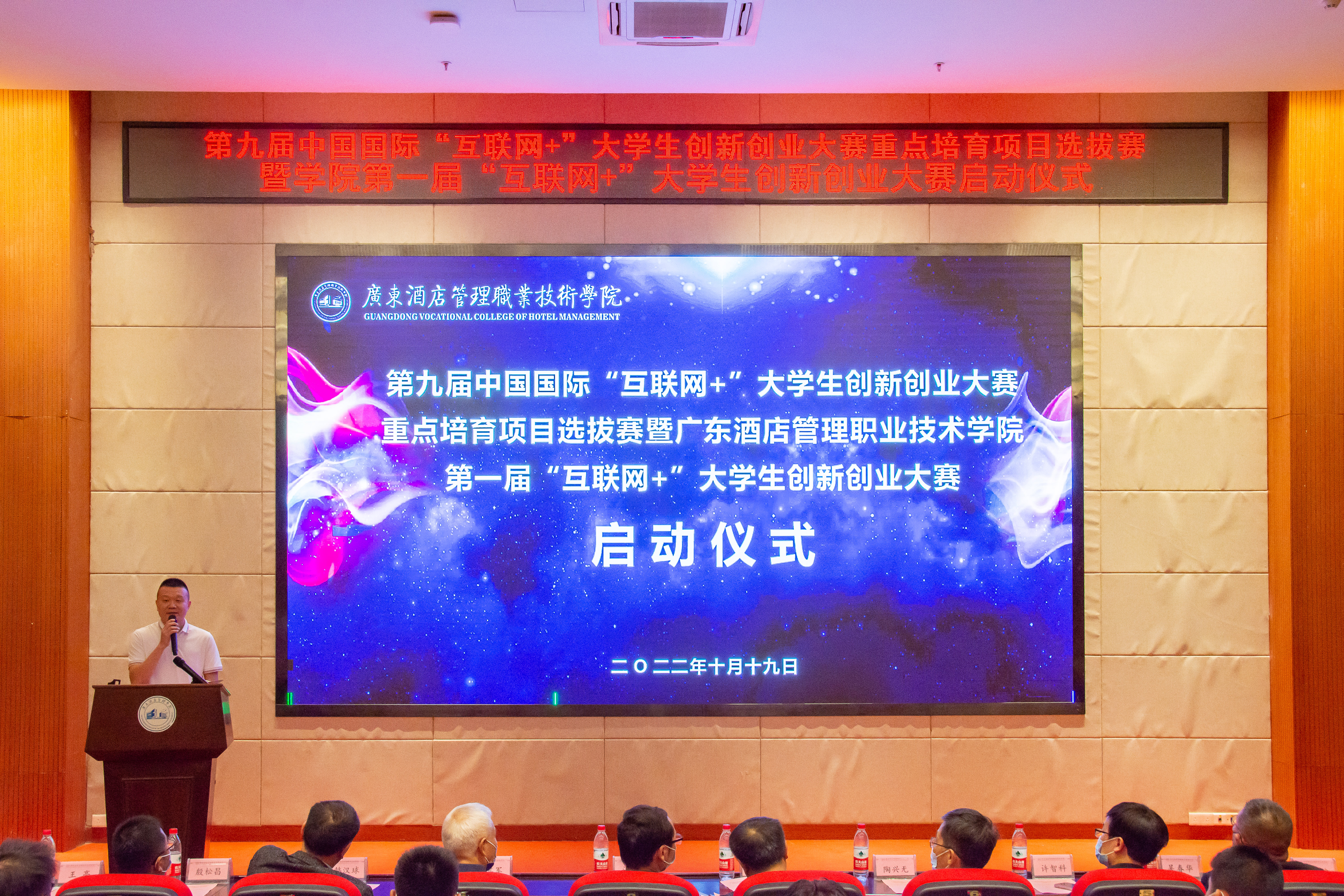 10月19日,第九届中国国际“互联网+”大学生创新创业大赛重点培育项目选拔赛暨广东酒店管理职业技术学院第一届“互联网+”大学生创新创业大赛启动仪式在学术报告厅隆重举行。副校长张天阳、党委副书记江伟、各二级学院及相关职能部门负责人、学生代表参加了仪式。仪式由创新创业学院院长黄大伟主持。 创新引领创业,创业成就梦想。江伟副书记强调,作为教育部主办的、规格最高的全国性双创比赛,中国国际“互联网+”大学生创新...