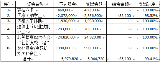 我校2020年民办学校财政专项到位资金合计597.98万,已发放594.47万,资金支出进度为99.41%。